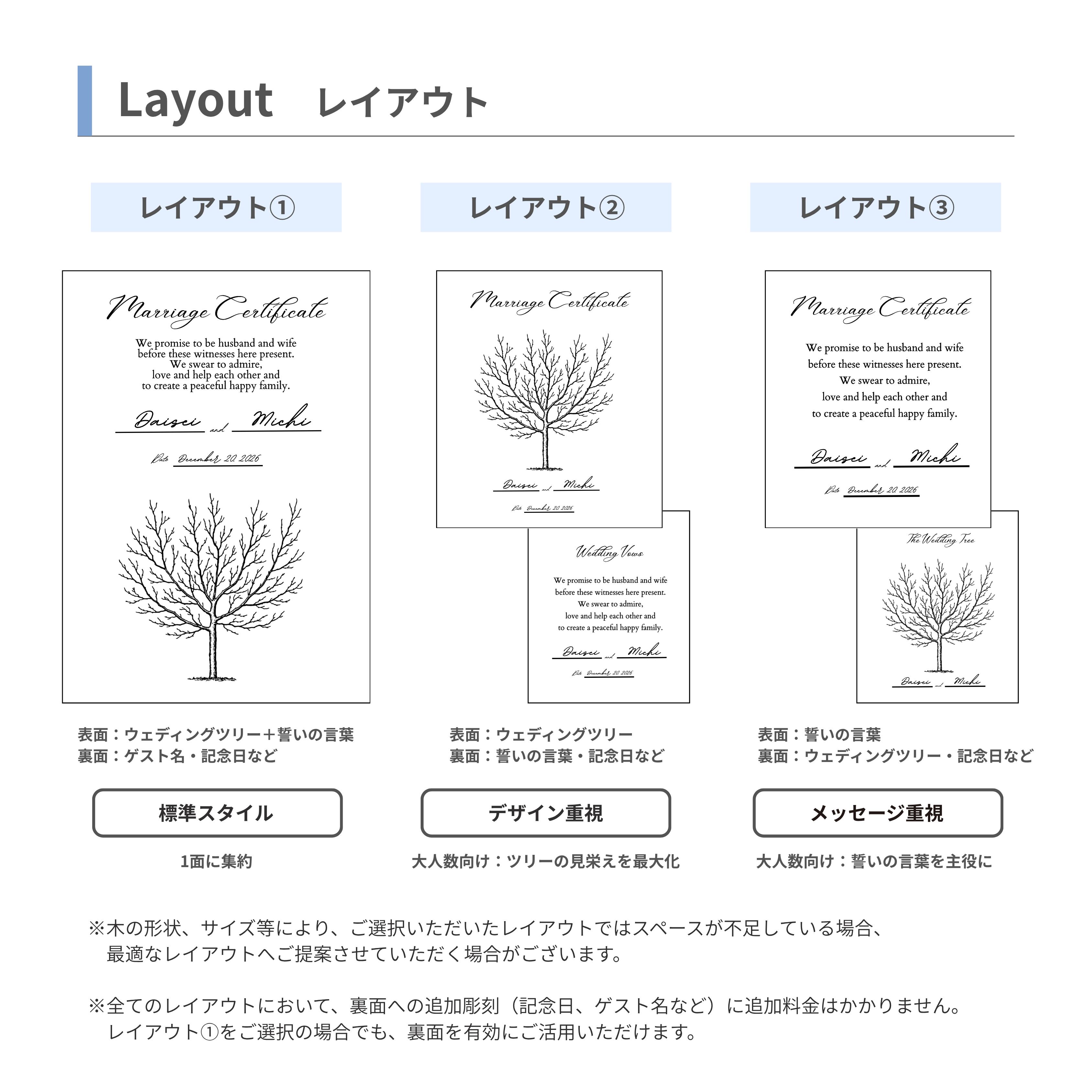 裏側彫刻/ウエディングツリー彫刻/イラスト彫刻など